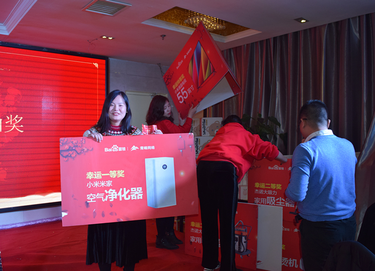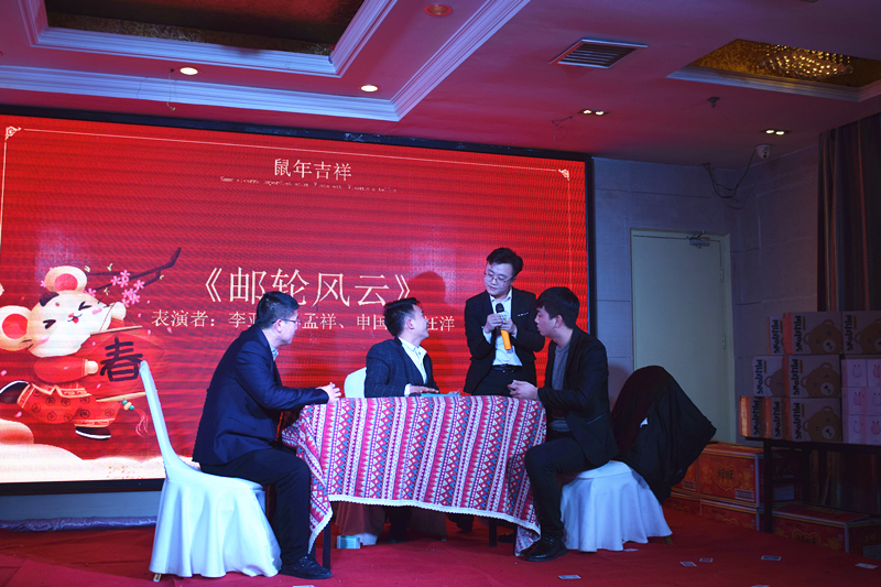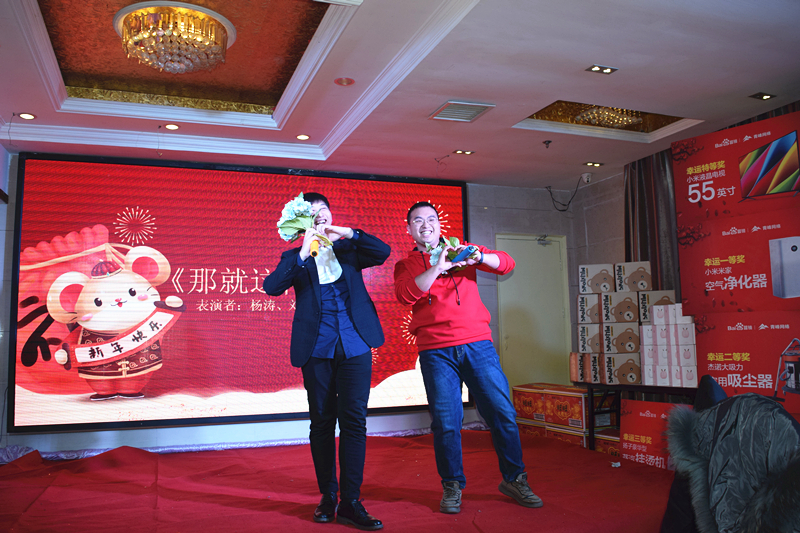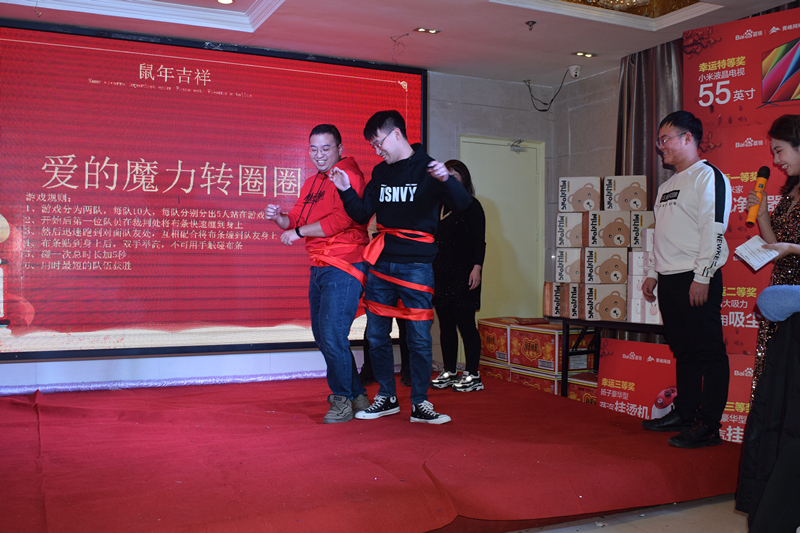 簽到篇 看到嗎?大獎已經(jīng)準(zhǔn)備好了?。?/p> 美酒美食上桌 簽到了小伙伴們?。?/p> 一聲簽到了,瞬間排起長龍! 美麗帥氣的主持人準(zhǔn)備開場! 2020,恭喜發(fā)財,萬事如意,笑口常開! 大獎非你莫“鼠”! 節(jié)目篇 一聲開門紅,開啟節(jié)目篇,將答謝會的熱情推向波高潮!祝福大家來年紅紅火火!! “歌神”一亮相,小迷妹們立刻集結(jié),演唱會模式瞬間開啟, oh my god!唱的也太好聽了吧! 營銷部小品《郵輪風(fēng)云》,完全顛覆了日常形象, 妥妥的小品“扛把子”誕生了! 吉他彈唱一首《晴天》,把我們瞬間帶進(jìn)美好的校園愛情的回憶,青峰人真是太多才多藝! 百度推廣部帶我們一起左邊畫個龍,右邊畫一道彩虹,兩個食指就像兩只穿天猴,指向閃耀的燈球?。?! 游戲篇 愛的魔力轉(zhuǎn)圈圈,一條大紅布圈起明年的好運來! 氣球運杯,你來我往,一會兒運氣爆棚! 好運連連,一件大T恤,連接起你我他!happy??! 篇 千呼萬喚篇即將來襲,你可能不知道,大家因為緊張的手都在顫抖! 然而,你可能想象不到,今年的大獎在輪就被抽走了?。?!臺下的小伙伴們,瞬間心死~~~ 他們其中有人歇完產(chǎn)假回來就上了一天班,就拿了一等獎, 還有人前一天晚上說如果我得了大獎怎樣怎樣,然后夸下的海口就突然實現(xiàn)了............ 看到特等獎的劉冉了嗎?我們已經(jīng)決定組團(tuán)去他家看電視了........ 哈哈哈哈! 頒獎片 付出總會有收回,小伙伴們來年繼續(xù)加油哇! 等一下,還有我們的神秘大禮 桶桶都旺! 祝愿大家統(tǒng)統(tǒng)都旺啊! 王總致祝酒詞希望大家凝心聚力,再創(chuàng)輝煌! 開啟今天的晚宴嘉年華! 讓我們共同舉杯!迎接2020! 后,祝福大家 鼠年送你大元寶,財源滾滾往家跑; 鼠年送你福滿多,和家幸福好運來; 鼠年送你紅綿襖,身上暖暖心里暖; 鼠年得到祝福多,一年順心萬事和! 新的一年,非你莫“鼠”